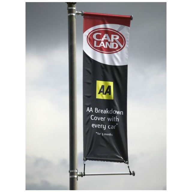We can produce banners to suit our lamp post banner arms from a range of different materials. The most popular option is our double sided PVC, this enables you to show off your branding and advertisings from both sides of the banner.