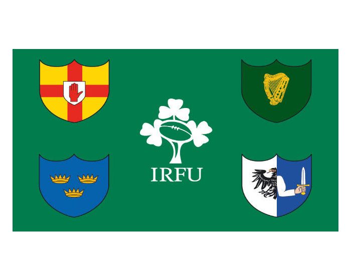 The flag of the Irish rugby team features a vibrant green backdrop adorned with the shields of the four provinces along with an emblem of Irish Rugby Football. This flag is proudly waved at matches held outside of Ireland. When the team competes in Northern Ireland, particularly at Ravenhill, the Flag of Ulster, which has a distinctive yellow background, is also displayed.