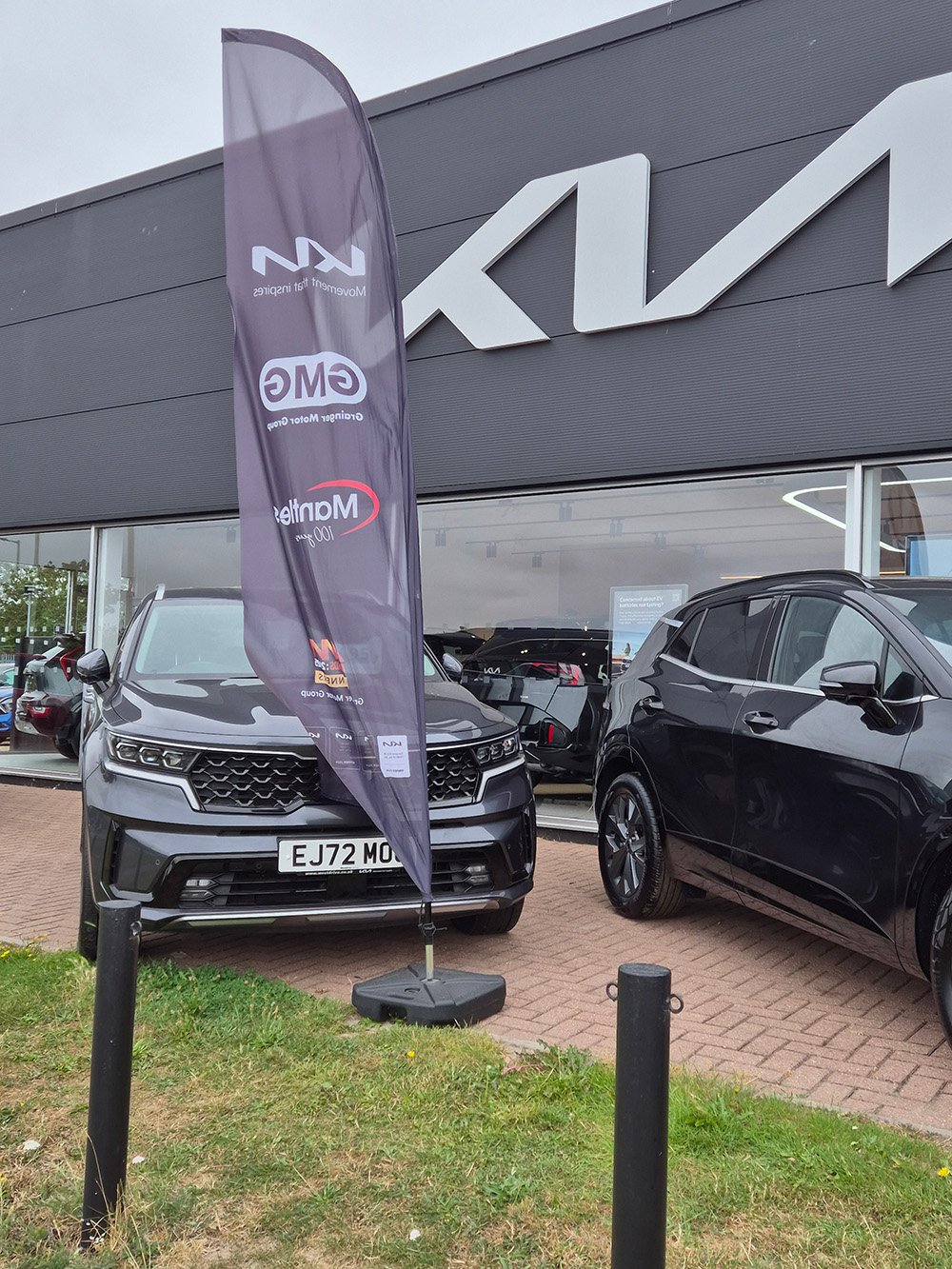 Feather flags are an extremely popular product in the automotive industry. We have supplied feather flags for our automotive dealership customers and our automotive event customers, providing them with a great promotional display tool. We have a wide range of feather flag shapes, helping you to create eye catching displays, ideal for grabbing attention and showing off your promotional messages.
