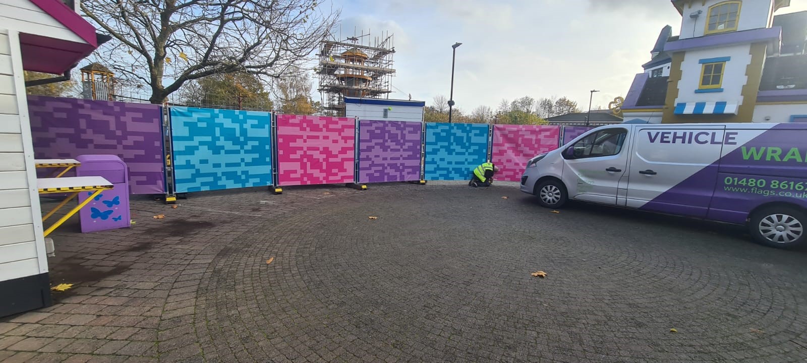 Fence scrim and covers are a great way to showcase your brand and promote your products and services. It is also a low cost alternative to hard signage and highly affective at transforming areas at any event.
